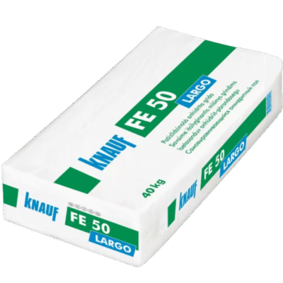 Floor mix FE50, 40kg bag. Calcium sulphate-based gypsum casting powder is a factory-made dry mortar, ready to mix with water. The product is used in construction work (indoors), it dries quickly and is easy to work with after drying, has very good filling capacity and volume stability. The product has good impact resistance and tensile strength. Gypsum is a non-combustible mineral of natural origin