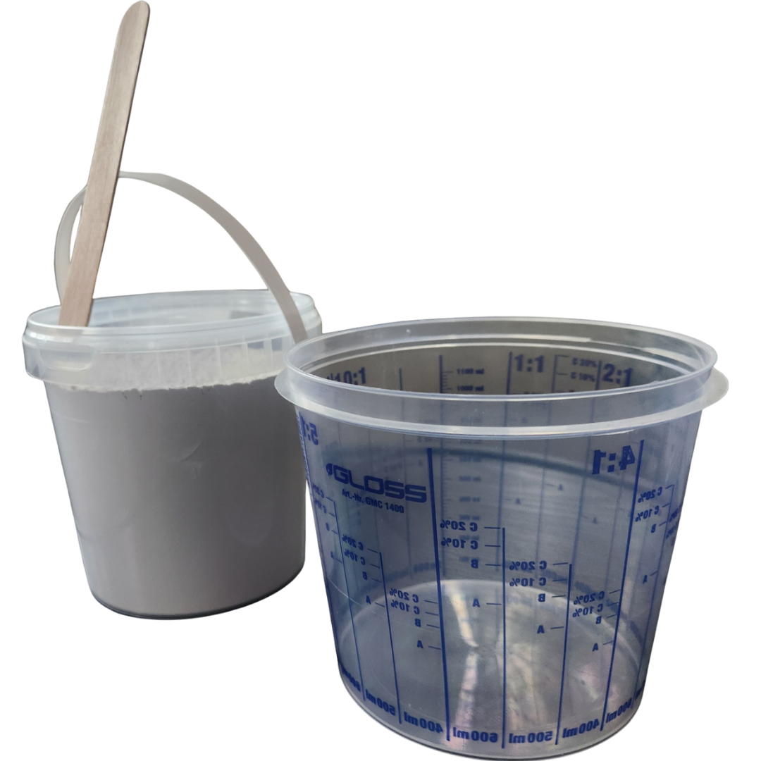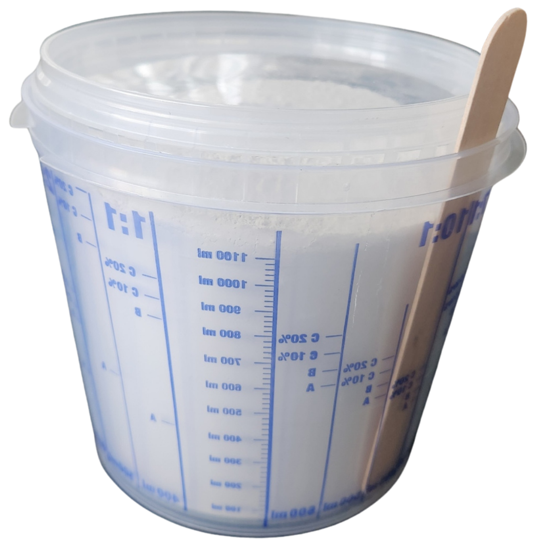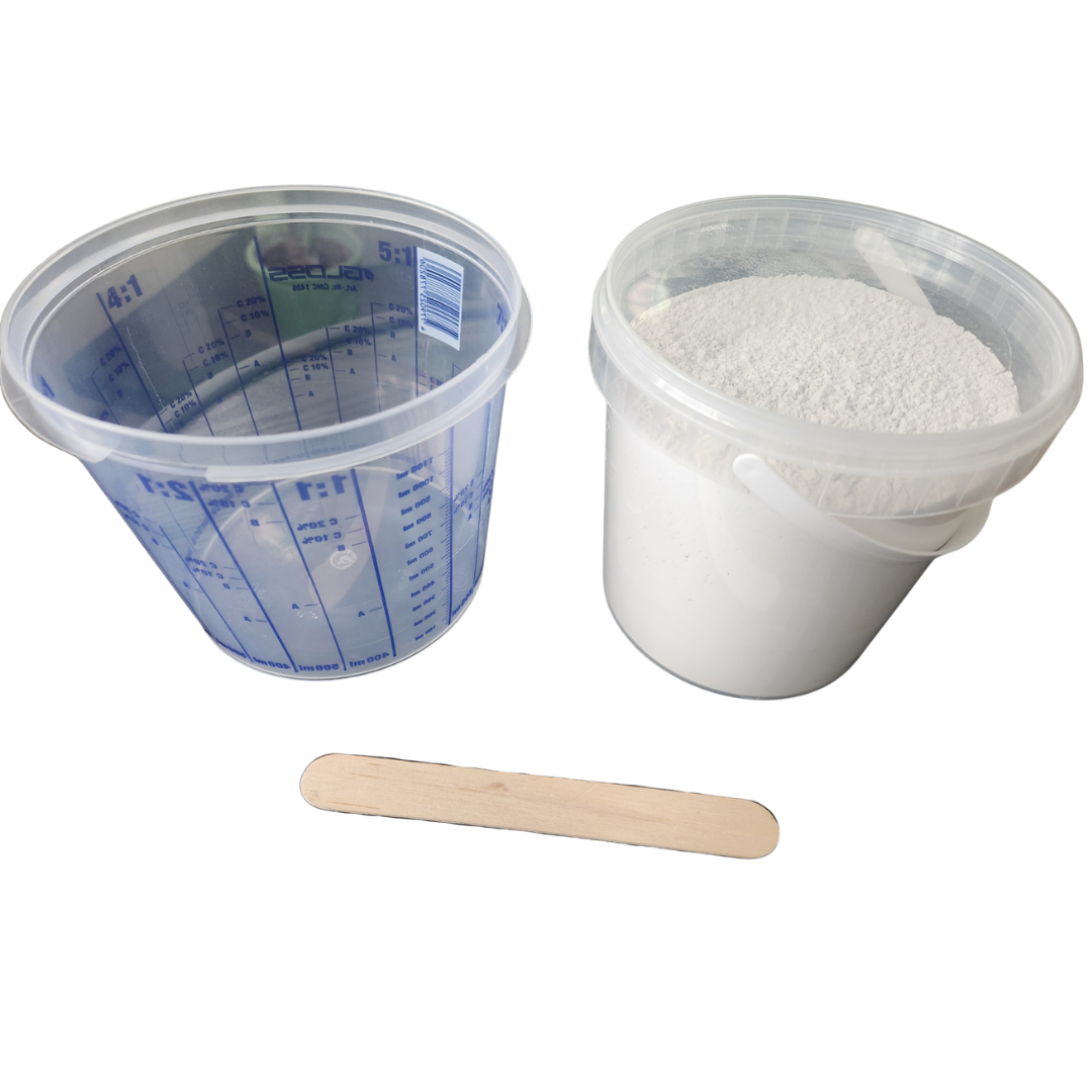 Model Gypsum 1 kg – Gypsum Powder Starter Kit. The kit includes two transparent plastic containers and a wooden stirring stick. With this starter kit, you can perform gypsum casting on a smaller scale – ideal for creating intricate details. Alabaster Model Gypsum is a very finely ground gypsum binder, specially selected from white gypsum stone. Suitable for restoration, conservation, and the production of cornices and decorative elements for indoor use. The product is also ideal for demanding tasks such as sculpture casting and applications in art, education, and research. Alabaster gypsum accurately reproduces shapes and details, features high surface hardness and compressive strength, and is easy to prepare – just add clean water.